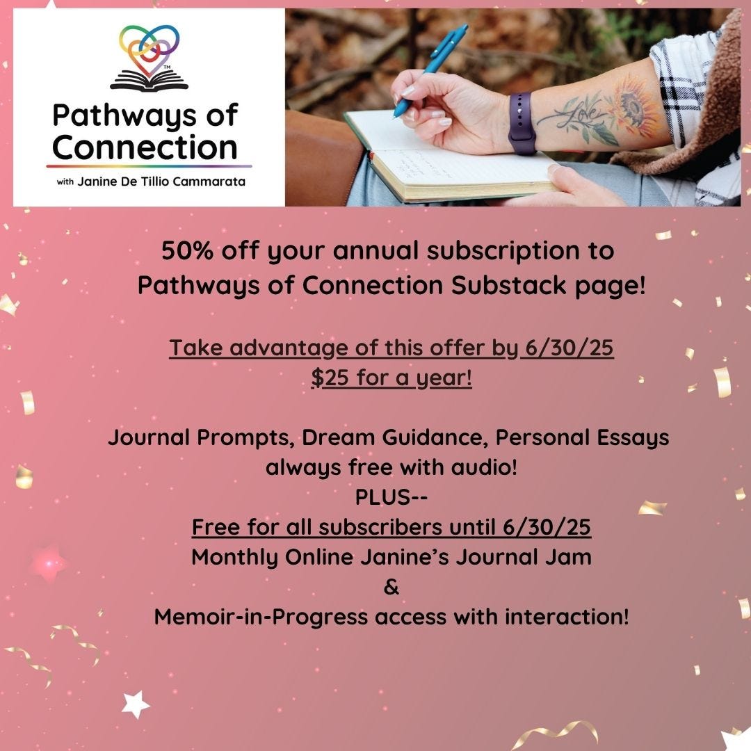 Subscribe for free to receive Janine’s Journal Jam, Dream Travels, and The Pause Place articles and stories.